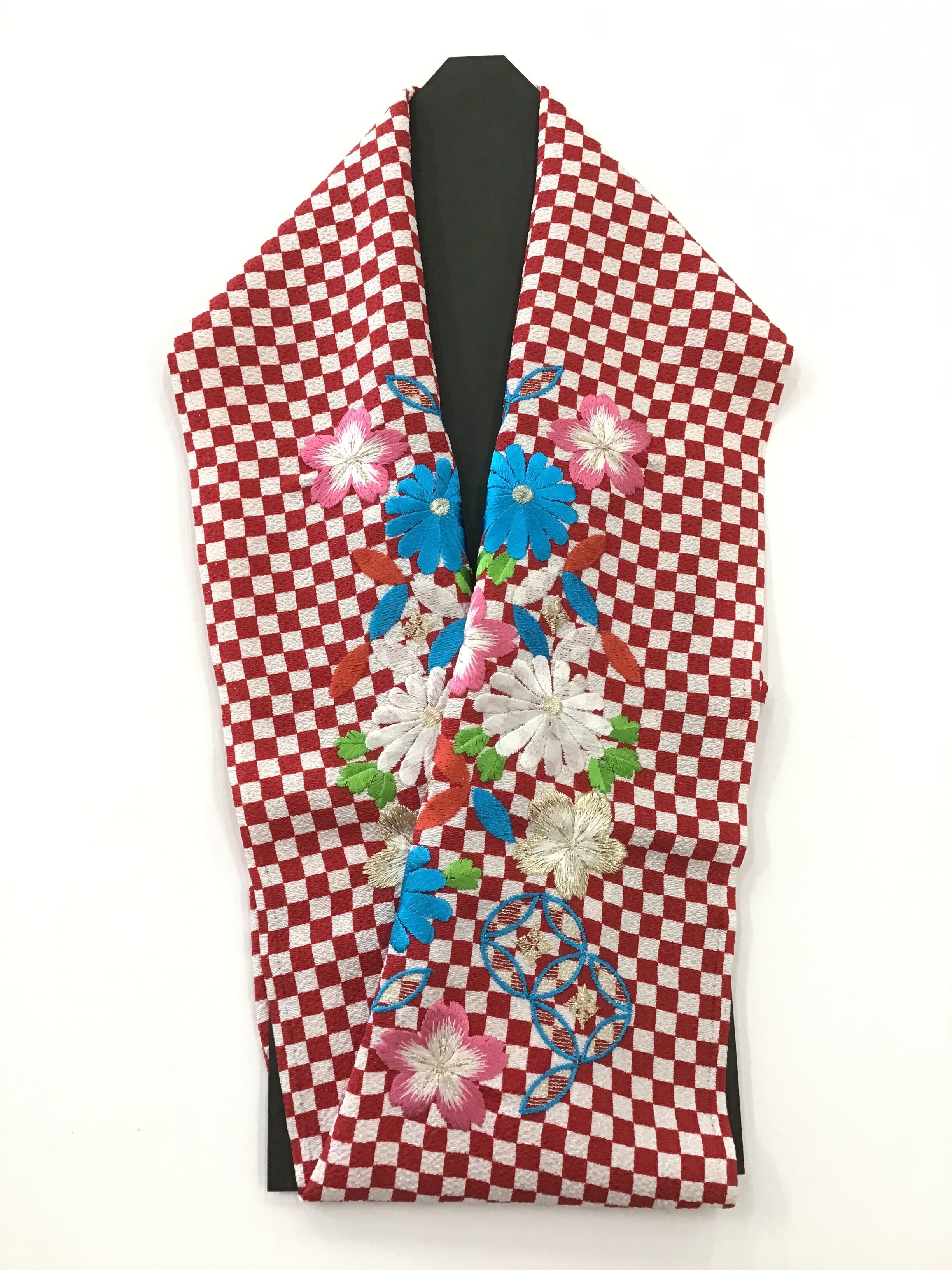 市松模様が艶やかな刺繍半衿です。
